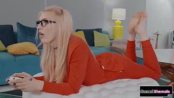 Gamer tgirl Izzy Wilde gets asked by bf to fuck and she doesnt want to.His roommate pulls out his cock and the big tits ts sucks it and is barebacked