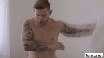 Hot Trans babysitter is in the laundry room and her horny boss starts fucking her ass.Instead of getting mad,she throats his hard big cock passionately and lets him fuck her wet ass again on the couch.