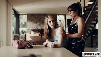 Watch lovely brunette milf shemale Melanie Brooks make out with petite small tits tranny babe Izzy Wilde while the husband is away.