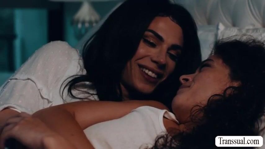 Horny teen and her shemale stepmom are on the bed kissing each other.Next is,TS stepmom licks and fucks the tight pussy of her stepteen.