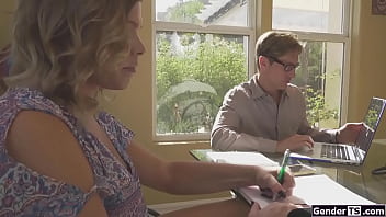 Small tits shemale student Cassie Woods gets her tranny cock sucked by her teacher outdoors.The blonde tgirl deepthroats and is anal barebacked