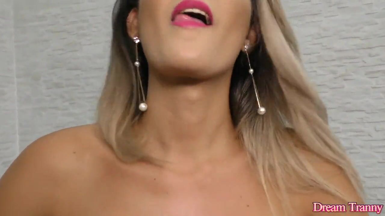 Sexy shemale babe plays with her dick and suck a gigantic dildo Then she stuff that dildo in her ass and stroke her dick Then she runs a fucking machine in her asshole
