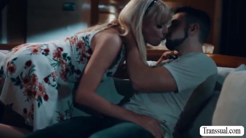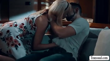 Handsome stepson helps his shemale stepmom find her wedding ring.After that,he lets his busty Ts stepmom suck his dick and rides it after.