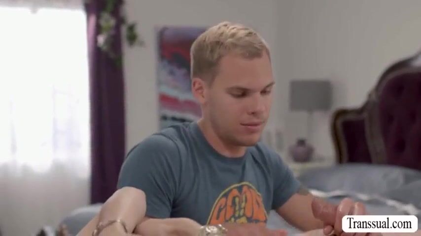 Handsome masseur massages his shemale customer and he then throats her shecock passionately.After that,he bareback fucks her ass so hard.