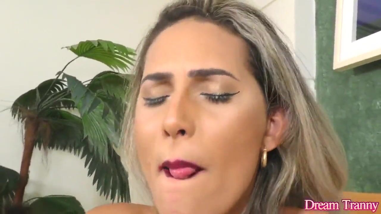 Sexy tgirl shows her sexy and curvy body She sucks a dildo and fingers her asshole She gets completely naked Then she masturbates with a dildo and toy pussy