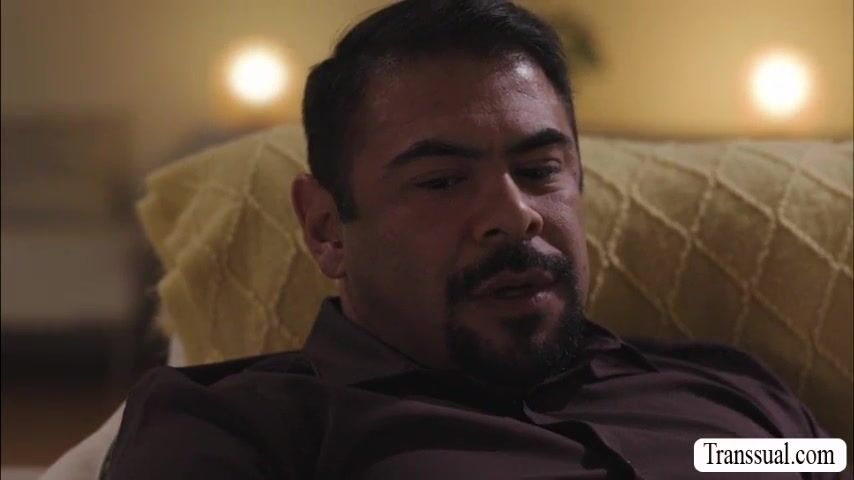 Fat guy goes to his trans woman psychiatrist and tells him problems.After that,his shemale psychiatrist pulls out her shecock and lets him it passionately.In return,his shemale psychiatrist suck his cock too and fucks his tight ass so deep and hard.