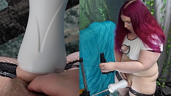 Hot Chubby Shemale Fucks Toy Jerks Off and Cums
