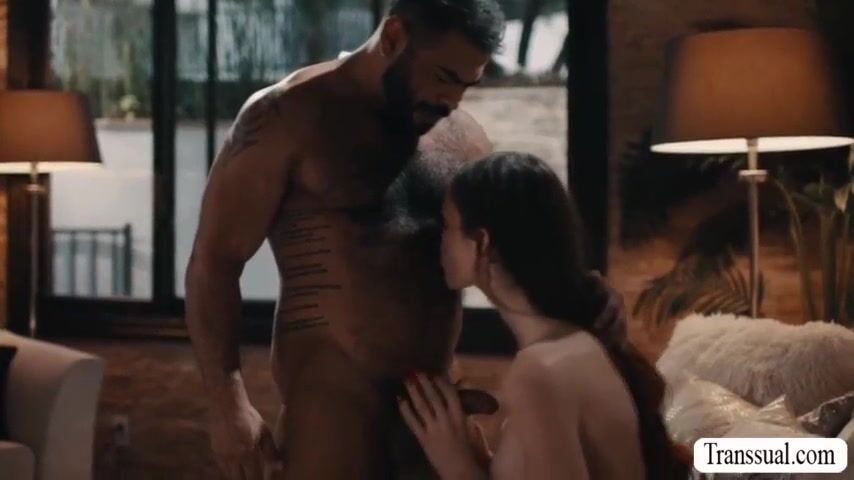 Beautiful shemale gets home and she lets her fat stepdad suck her hard shecock and in return,she licks and barebacks his ass so hard.