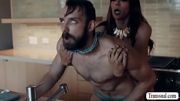 Straight stepson makes his TS stepmommy a coffee and he then throats her shecock and lets her fuck his ass so hard.