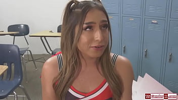 Trans cheerleader Paradise wants some dick and her teacher helps her.The latina tgirl sucks his big cock and he rims the shemale.Then shes barebacked