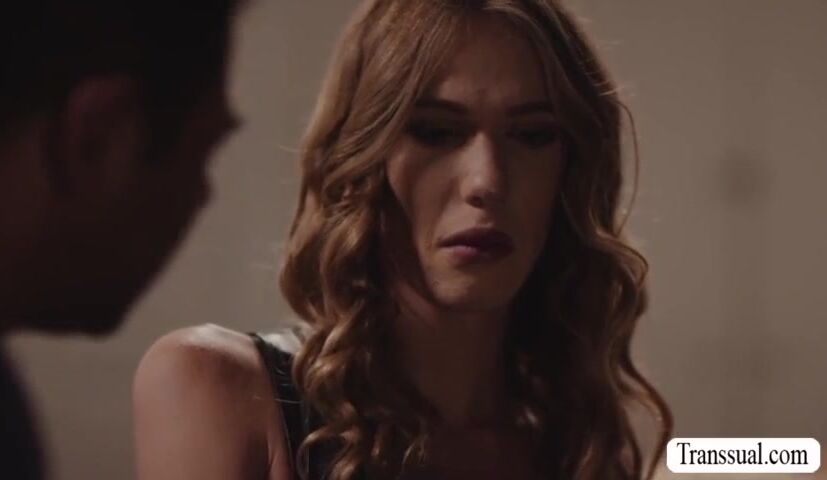 Skinny TS stepdaughter comforts her crying stepdad by letting him suck her tranny cock passionately.After that,she lets him bareback fuck her ass.