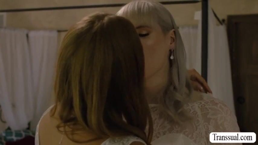 Busty brides maid throats the shecock of the TS bride and after that,she then lets her fuck her wet tight pussy so deep and hard.