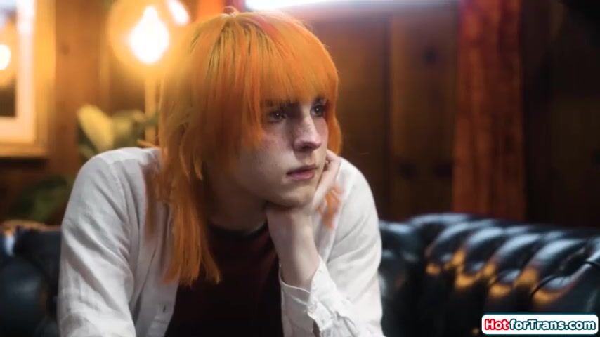Tranny Jean Hollywood wants to have sex with shrink Casey Calvert.The small tits shemale kisses her and gets her trans cock sucked before banging her