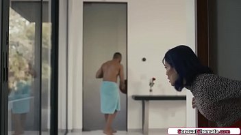 Guy is leaving his gfs room when his gfs TS Foxxy brings him into her room.He sucks her tits and the tranny gives him a bj and he barebacks her