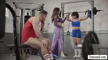 TS Jade Venus caught her friend sucking cock of their gym instructor.After that,she ties up her friend and lets her watch while shes sucking instructors big cock.After that,she lets him lick and fuck her wet ass so hard.