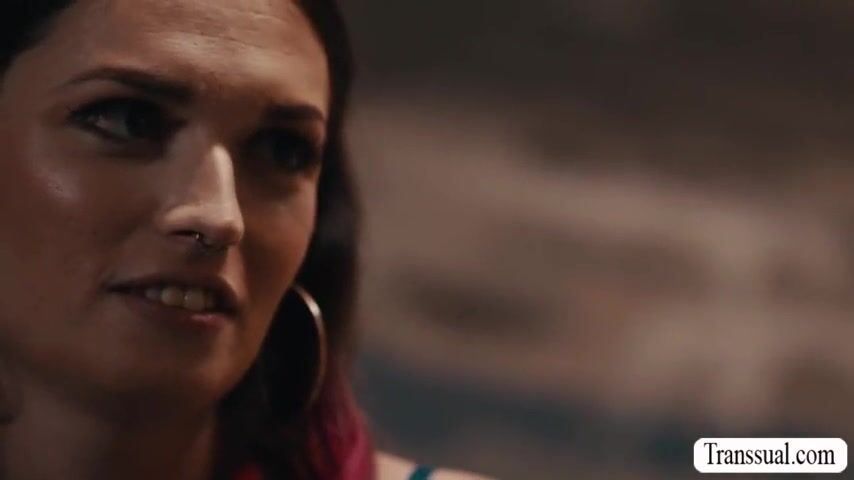 Pink haired TS is in the room of her stepbrother and she throats his hard big cock passionately.In return,her stepbrother bareback fucks her ass.