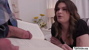 Shemale stepdaughter throats the big cock of her stepdad passionately while he puts it on the book.After that,her stepdad licks and fucks her ass.