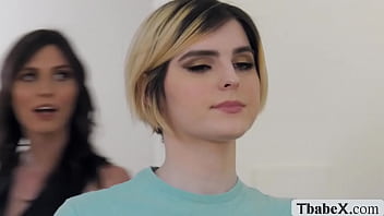 Brunette busty shemales Jenna Creed and Korra Del Rio went over at small tits tranny Ella Hollywood for the weekend.