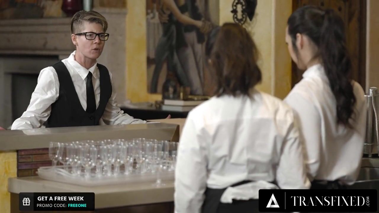 Jane Wilde and Khloe Kay try not to get caught fucking on the job during an important catering gig...