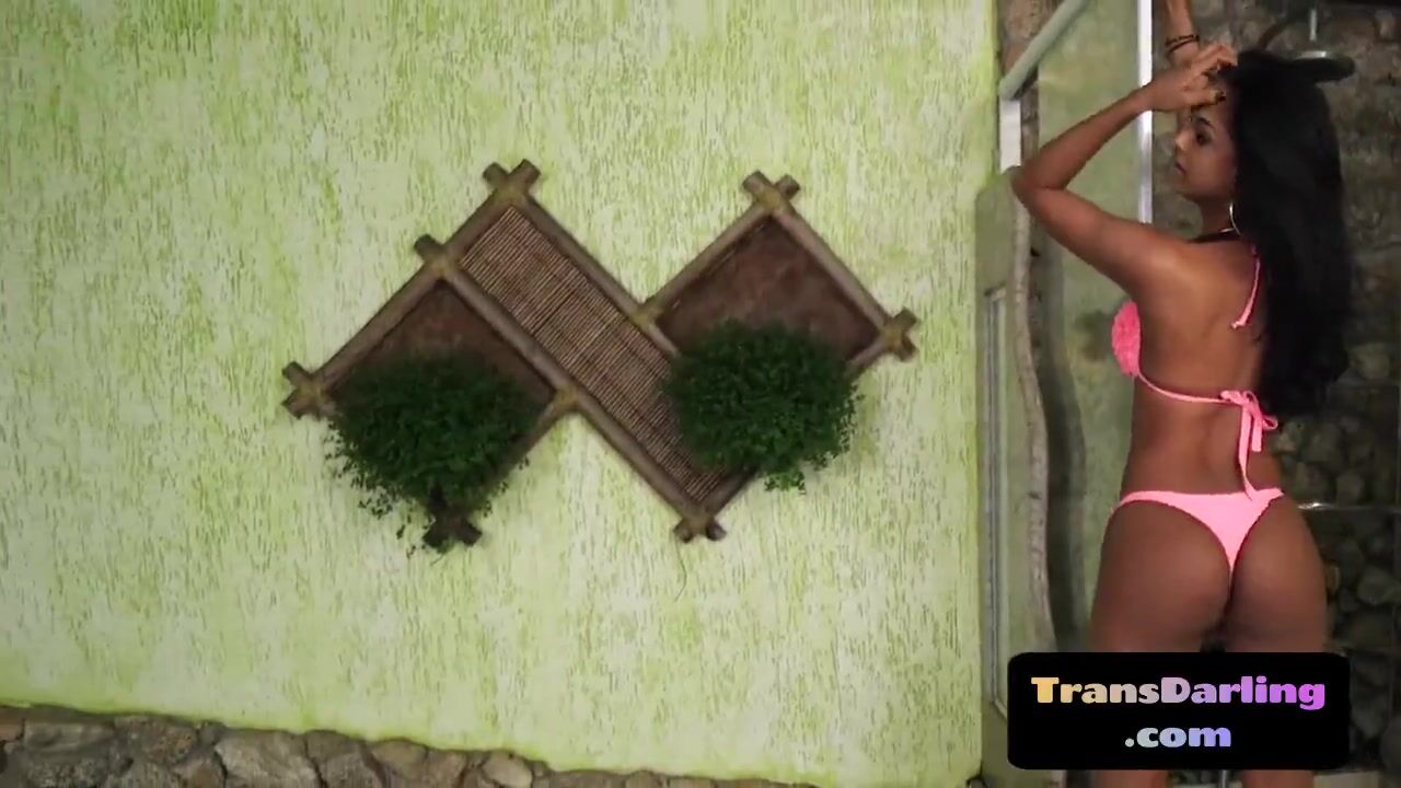Blackhair tgirl strips before jerking off and toying ass