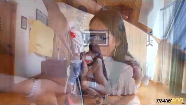 Beautiful tranny Valetia in ass-fucking action with lucky