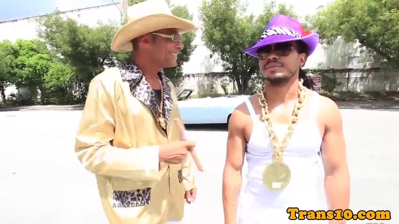 Ladyboy spitroasted hard by black dudes then cumswallows