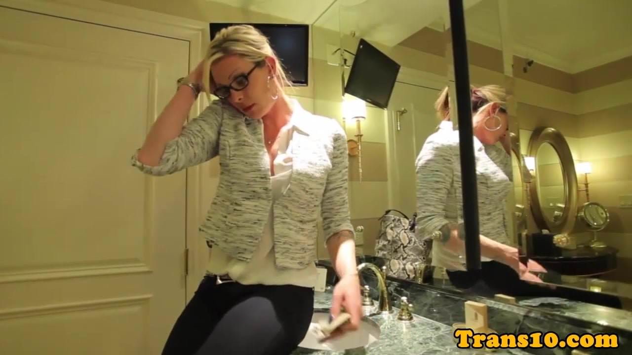 Inked ts drools on dick then gets pounded and jizzed on back tattoo