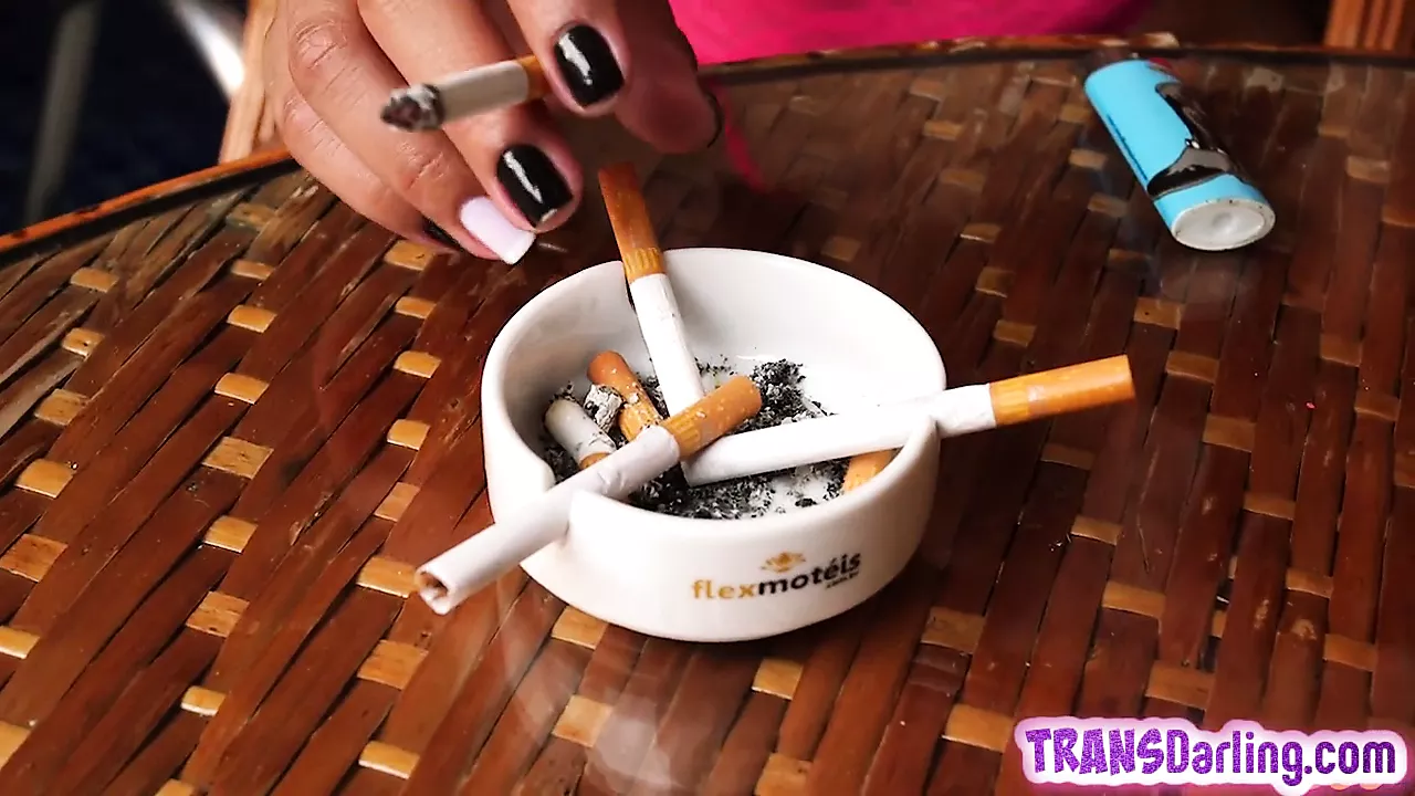 Busty trans beauties showing bodies off and smoking solo