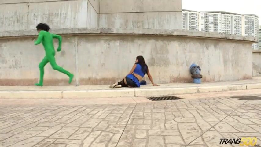 Hot shemale fucked by two Superheroes