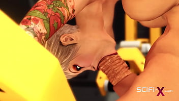 Super busty young blonde can't resist anal having sex with cyber dickgirl