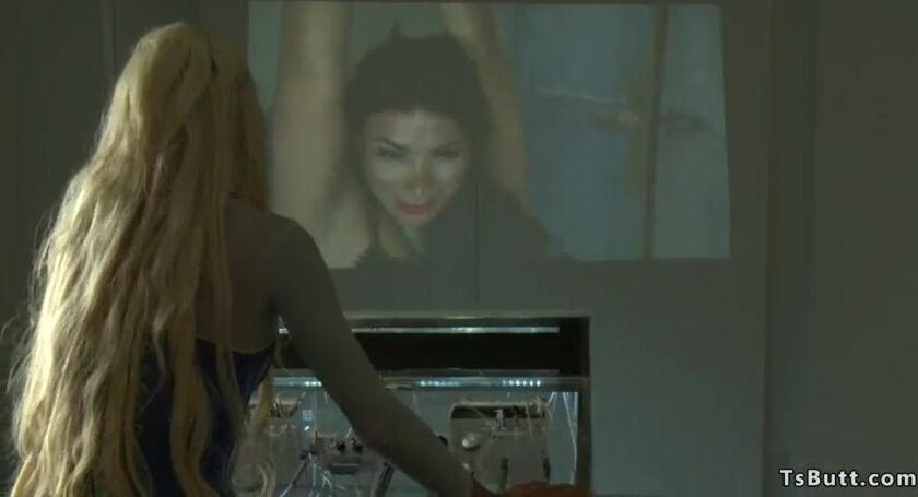 Hot blonde Courtney Taylor saves shemale in latex Vaniity from bondage and then puts Will Havoc in rope bondage and then anal fucks him in threesome
