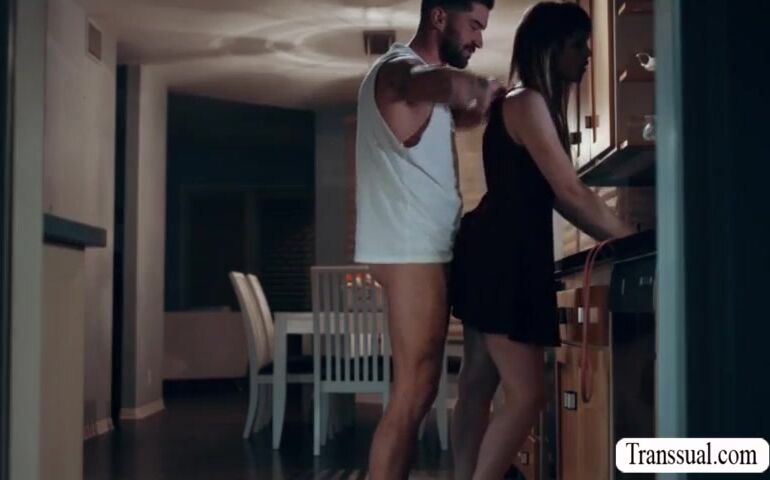 Slut shemale caught by her stepbro sneaking in the house late at night.Before he tells it to their parents,smalltits TS lets stebro bareback her ass.