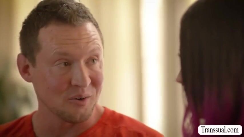 Stepbro goes to the house of his shemale stepsister and he wants to stay there for a while.After that,he licks her ass and then barebacks it.