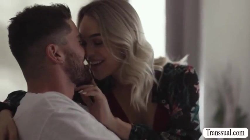 Busty shemale and her stepbro are on the couch watching movies.After that,she gets horny and start throating stepbros cock before she gets barebacked.