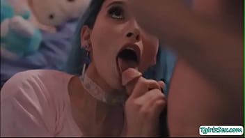 Horny shemale lets her new roommate watch while she is toying her tight ass on her bed.After that,she lets him comes in and puts his dick inside her wet ass.In return,she throats his big cock passionately and lets him fuck her ass again.