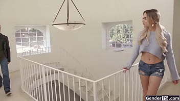 Shemale babysitter Emma Rose has a guy watching her taking a nap.He wants to jerk off on her and the tgirl lets him.The trans sucks and anal rides